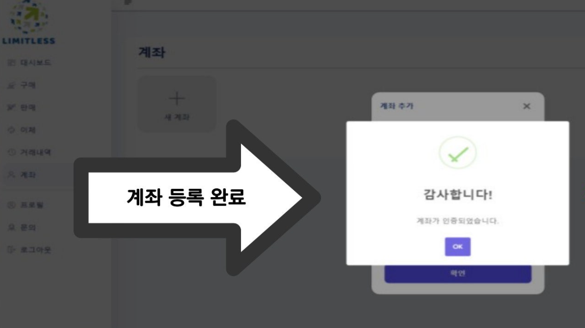 7. 왼쪽 계좌 버튼 누르시고 계좌 등록 되셧는지 확인