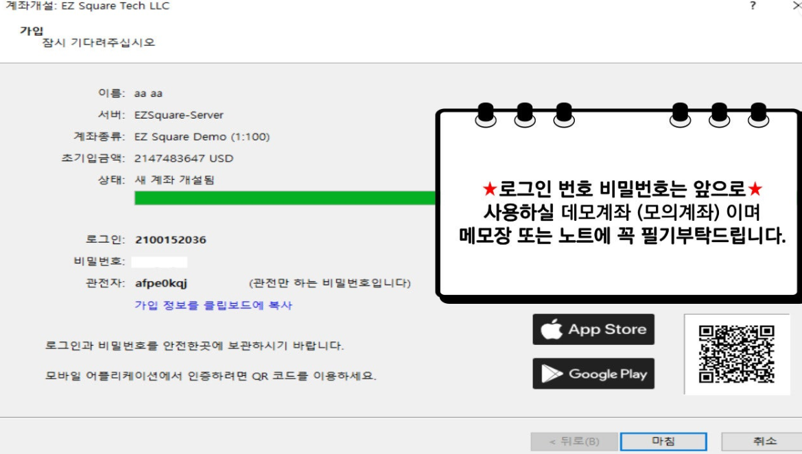 그럼 이렇게 데모계좌 (모의계좌) 개설이 완료되셧습니다.