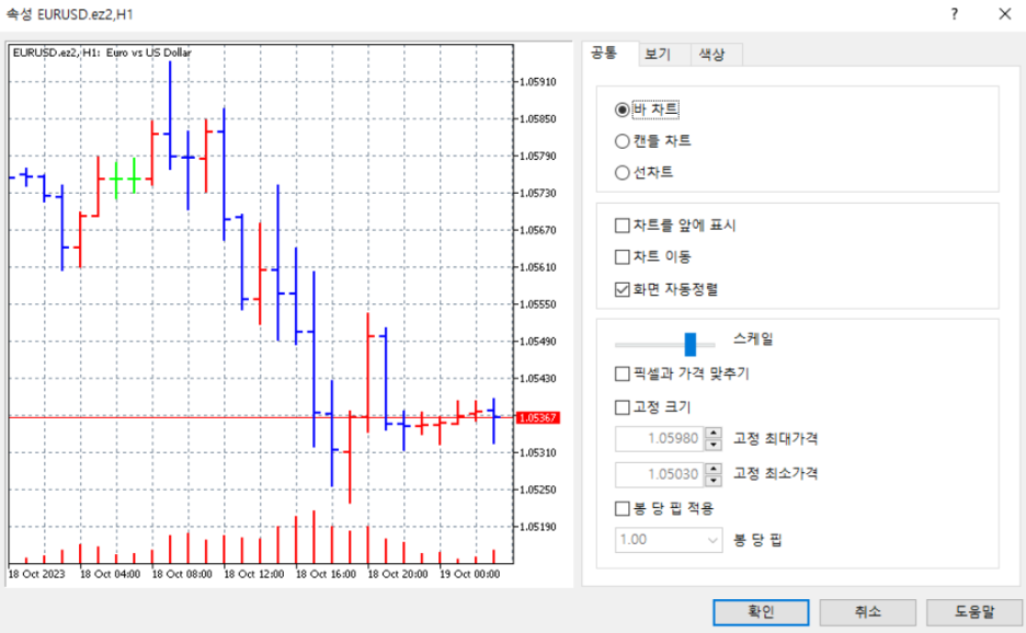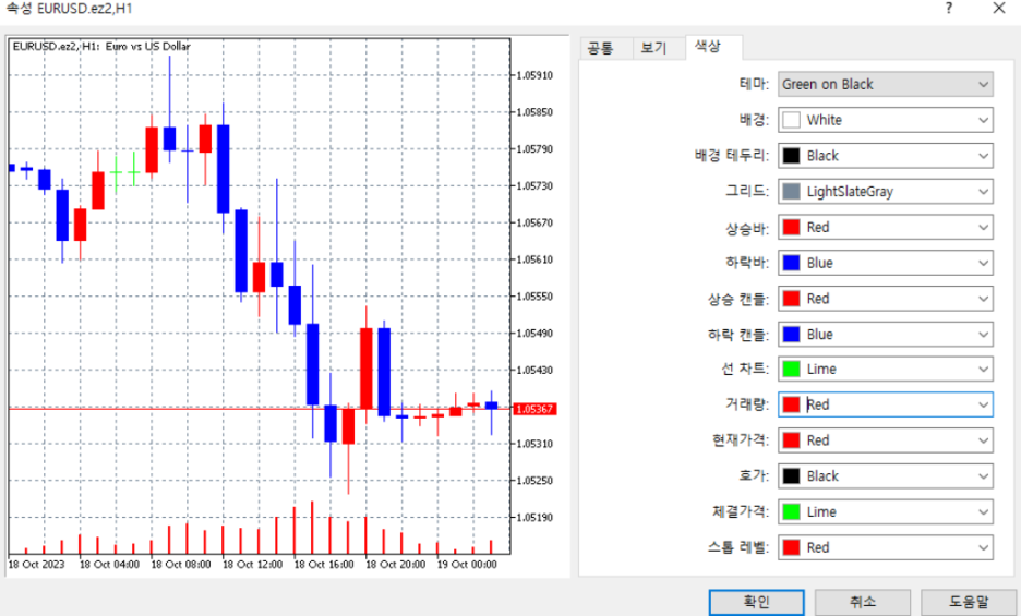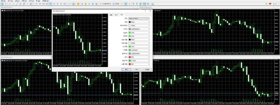 차트 배경과 캔들 색상 변경 설정에 대하여 먼저 알아보겠습니다.