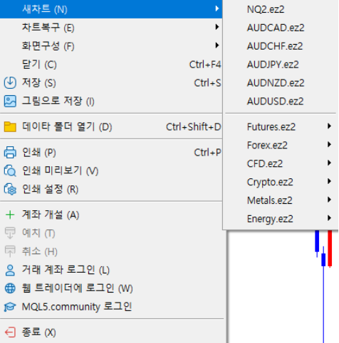 먼저 새 차트라는 기능이 있으며 차트를 여는 기능입니다.