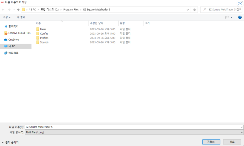 확인 버튼을 누르시면 저장 화면이 나오시는데 PNG 파일로 저장이 가능하십니다.