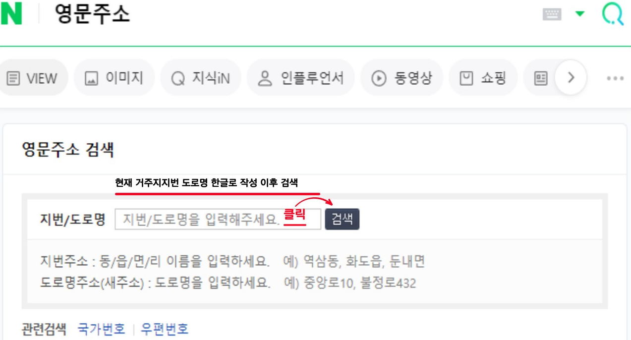 (지번/도로명) 현재 거주지 지번 또는 도로명 검색