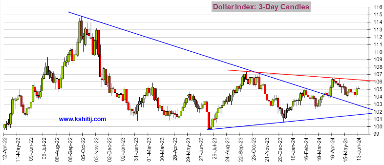 달러 인덱스는 105.45를 테스트한 후 약간 하락. 오늘 미국 소비자 물가 지수(CPI)와 연방공개시장위원회(FOMC) 정책 회의가 예정. 가까운 시일 내에 105.50-104 범위가 유지될 것으로 예상. 그러나 105.50을 돌파하면 106-106.50으로의 문이 열릴 것.