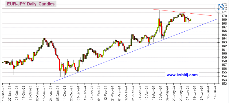 EURJPY는 현재 170-168 범위 내에서 하락하고 있음. 쌍방 중 어느 한쪽으로 돌파해야 추가적인 방향성이 명확해질 것. 그 전까지는 언급한 170-168 범위가 한동안 지속될 수 있음.