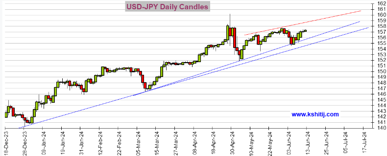 USDJPY는 예상대로 점진적으로 158을 향해 상승하고 있음. 이후 상승세가 멈출지 또는 더 올라갈지는 지켜봐야 할 것.