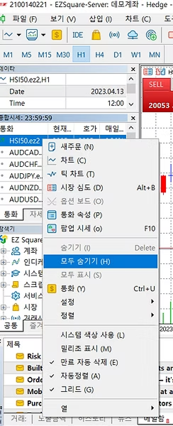 2.계좌 선택 후 오른쪽 마우스 클릭