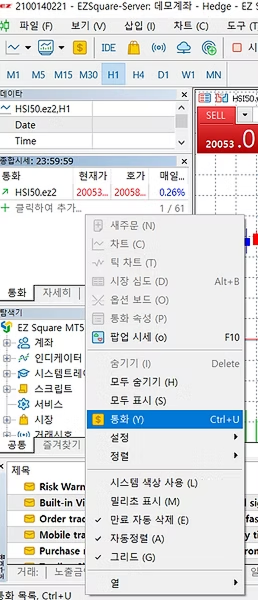 6. 종합시세 부분에서 오른쪽 마우스