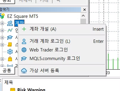 3.1 계좌가 없을 경우, 계좌 선택 후 오른쪽 마우스 클릭