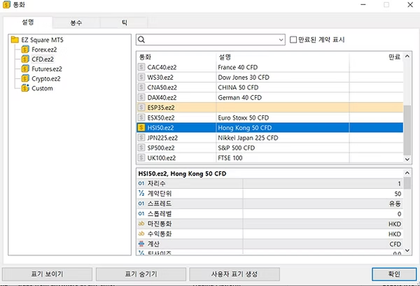 8. CFD 클릭 후, HSI50 더블 클릭