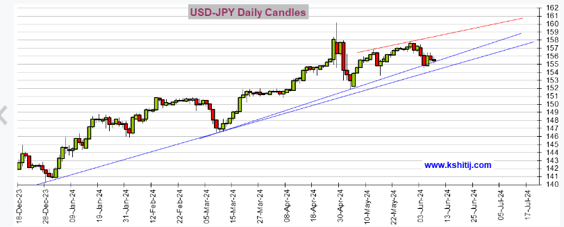 달러-엔은 단기 밴드인 154-156.50 내에서 상승하고 있음.