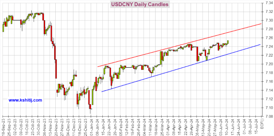 USDCNY는 마침내 7.25를 돌파했으며, 만약 이 수준을 유지하면 중기적으로 7.26-7.28을 목표로 할 수 있음. 7.25 이상을 유지하지 못하면 하단으로 7.24/23으로 다시 내려갈 수 있음.