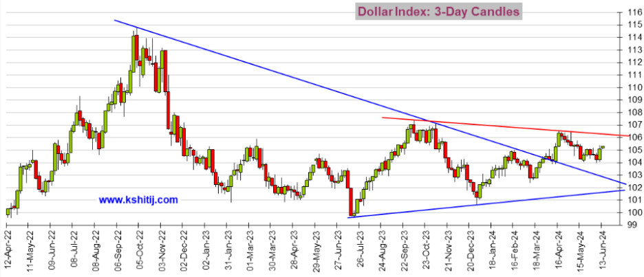USD 달러 지수는 105 이상에서 유지. 내일 예정된 FOMC 정책 회의에서는 금리를 동결할 가능성이 높음. 단기적으로 105.50-104의 범위가 유지될 것으로 예상. 105.50을 돌파하면 106-106.50까지 열릴 수 있음.
